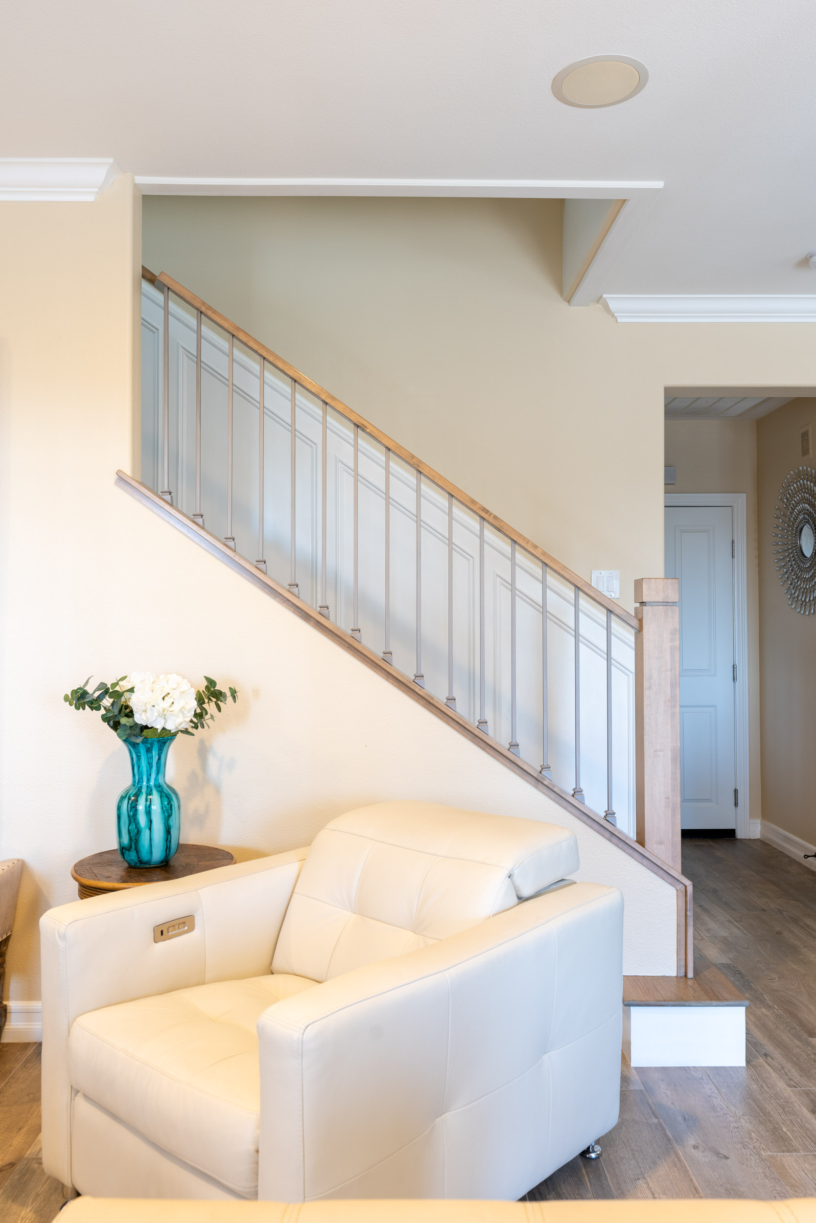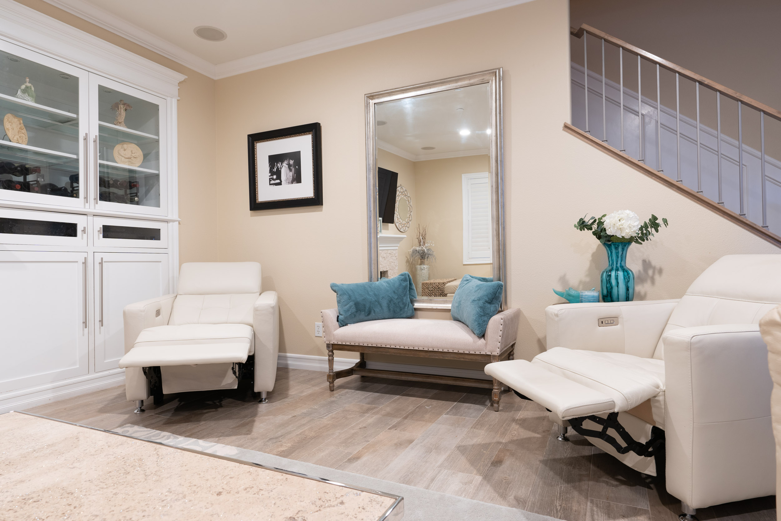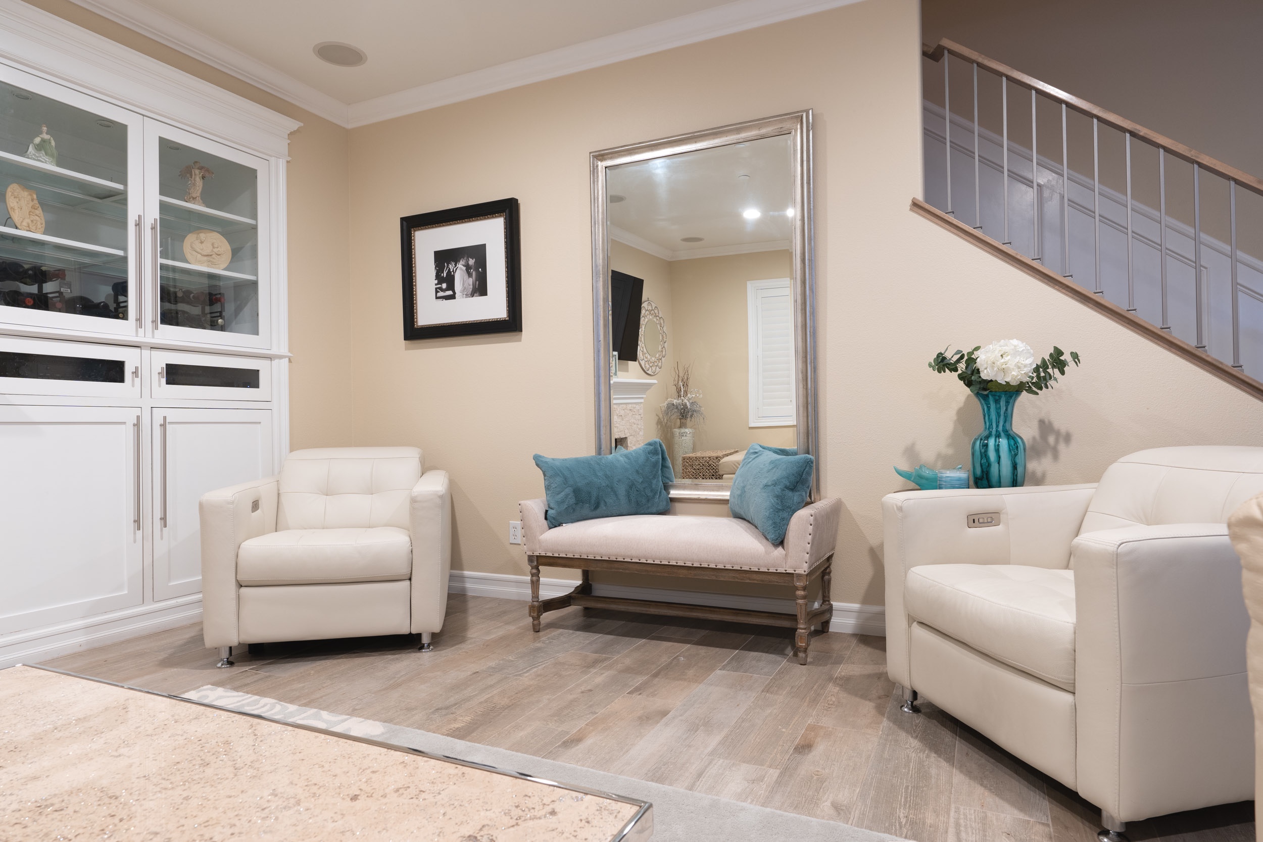 A room that becomes a place where family comes together should be warm, inviting and above all, relaxing. Warm and cool tones in this room were brought together to achieve a relaxing environment where all can enjoy and talk about their day.